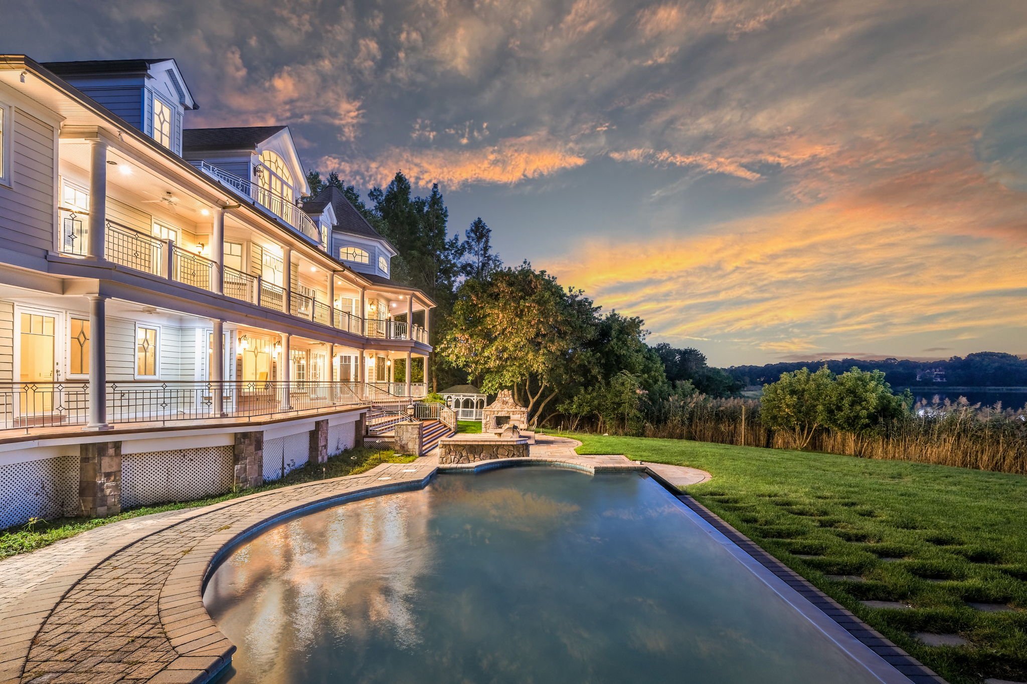 Includes a richly detailed office, private upper-level room with Juliet balcony, and a lower-level entertainment area with full bar, billiard room, and flex space.